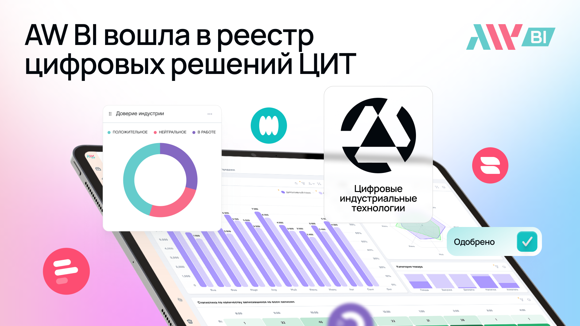Бизнес-аналитическая платформа AW BI включена в реестр цифровых решений ФГАУ «Цифровые индустриальные технологии» (ЦИТ) центра компетенций Минпромторга России. В реестр попадают технологии, которые прошли экспертную проверку и доказали свою полезность на реальных производственных задачах.